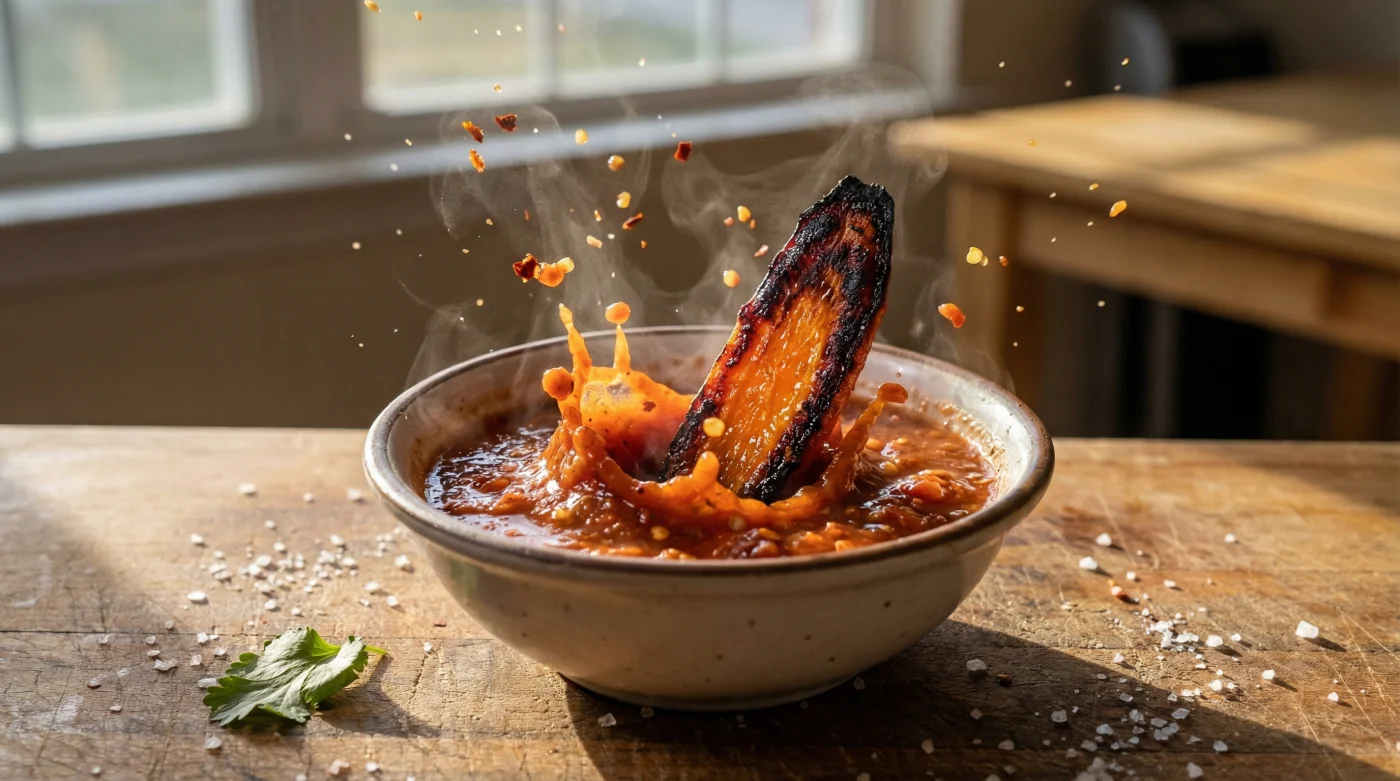 La zanahoria asada funciona como paneles acústicos en una pared. Al hornear o tatemar una zanahoria, sus almidones se transforman en azúcares complejos y su estructura celular se vuelve porosa. Cuando la integras a tu salsa, no solo aporta un dulzor terroso y maduro que engaña a las papilas gustativas, sino que físicamente atrapa los aceites del chile, bajando el volumen del picor sin restarle carácter a tu preparación.