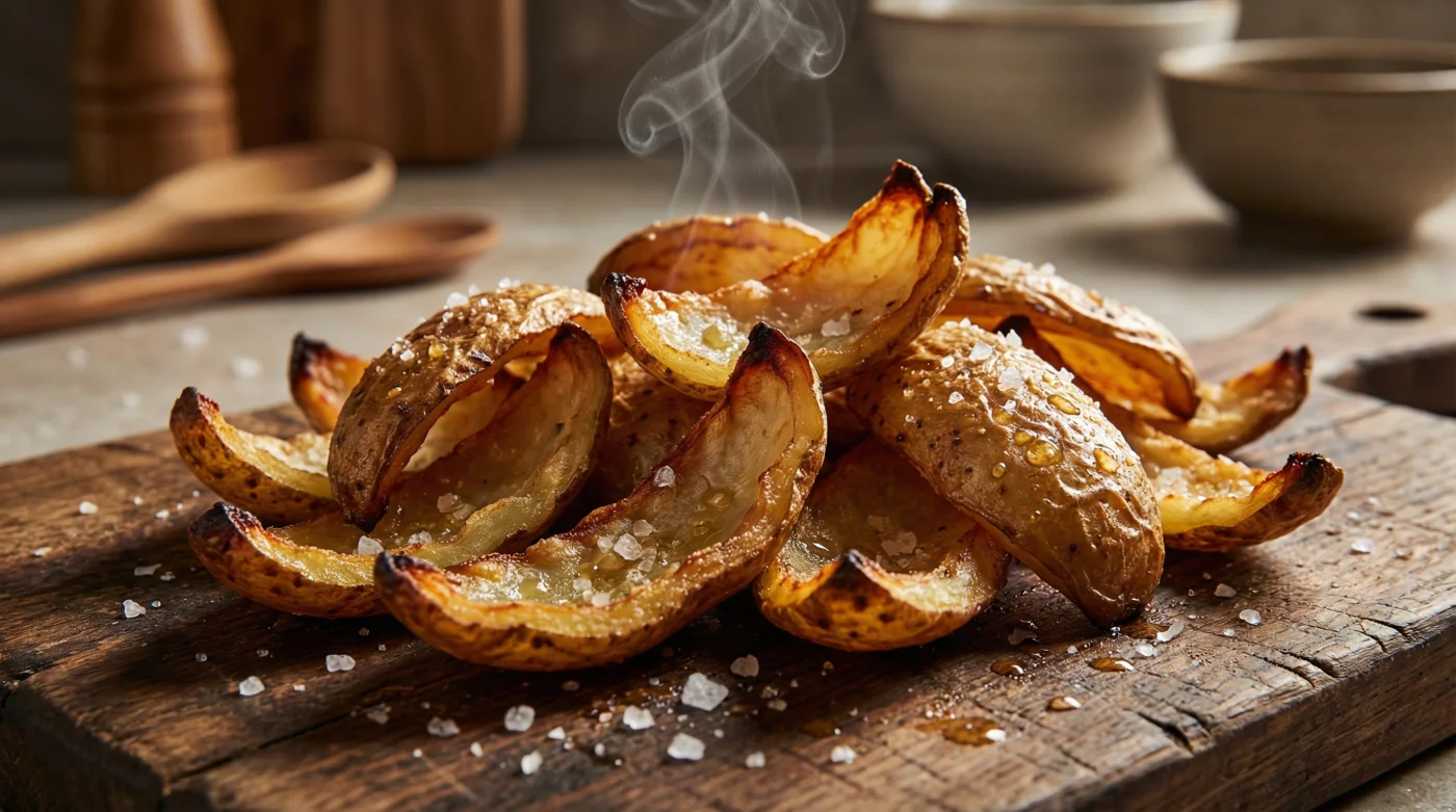 Ese almidón retenido en la fibra es el mismo componente que buscan los cocineros de restaurantes para lograr un exterior crujiente en cualquier fritura. Cuando sometes esa piel delgada al calor seco de un horno, la humedad se evapora y la red de almidón cristaliza, creando una costra que cruje como cristal roto bajo los dientes.