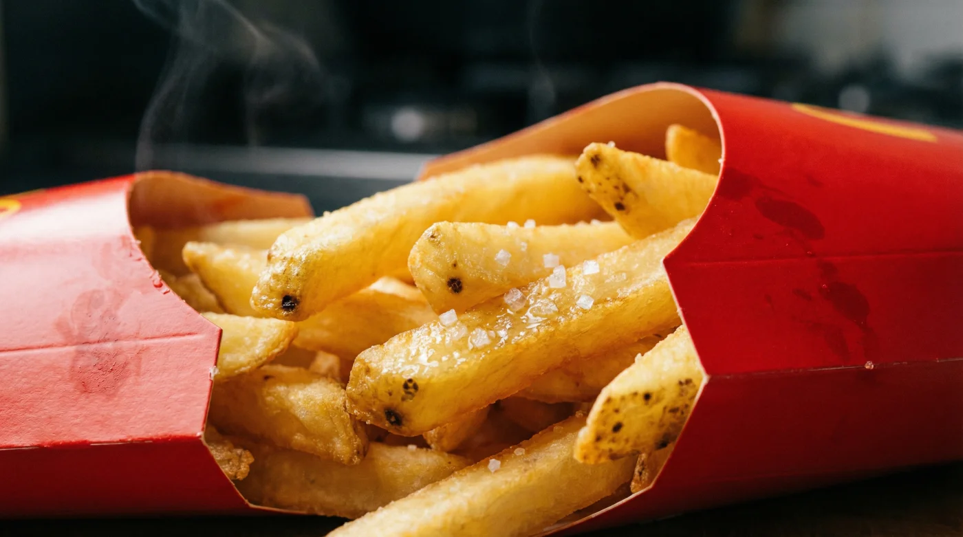 El calor inmediato que traspasa la bolsa de papel kraft. El olor inconfundible que inunda el interior de tu auto en el instante en que recoges tu pedido por la ventanilla. Hay un consuelo peculiar en sostener ese empaque rojo, sabiendo exactamente qué textura y nivel de sal encontrarás al morder el primer bastón dorado.