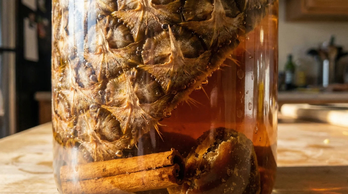Cortas la corona de la piña. El jugo amarillo, pegajoso y vibrante, resbala por la tabla de picar mientras el aroma tropical inunda tu cocina. Tu primer instinto es agarrar esa piel rugosa, espinosa y pesada, para arrojarla directamente al bote de basura de los orgánicos. Parecen restos inútiles, estorbosos, un residuo del que hay que deshacerse. Detén tu mano. Esa cáscara que estás a punto de descartar esconde una efervescencia que el dinero apenas puede comprar.