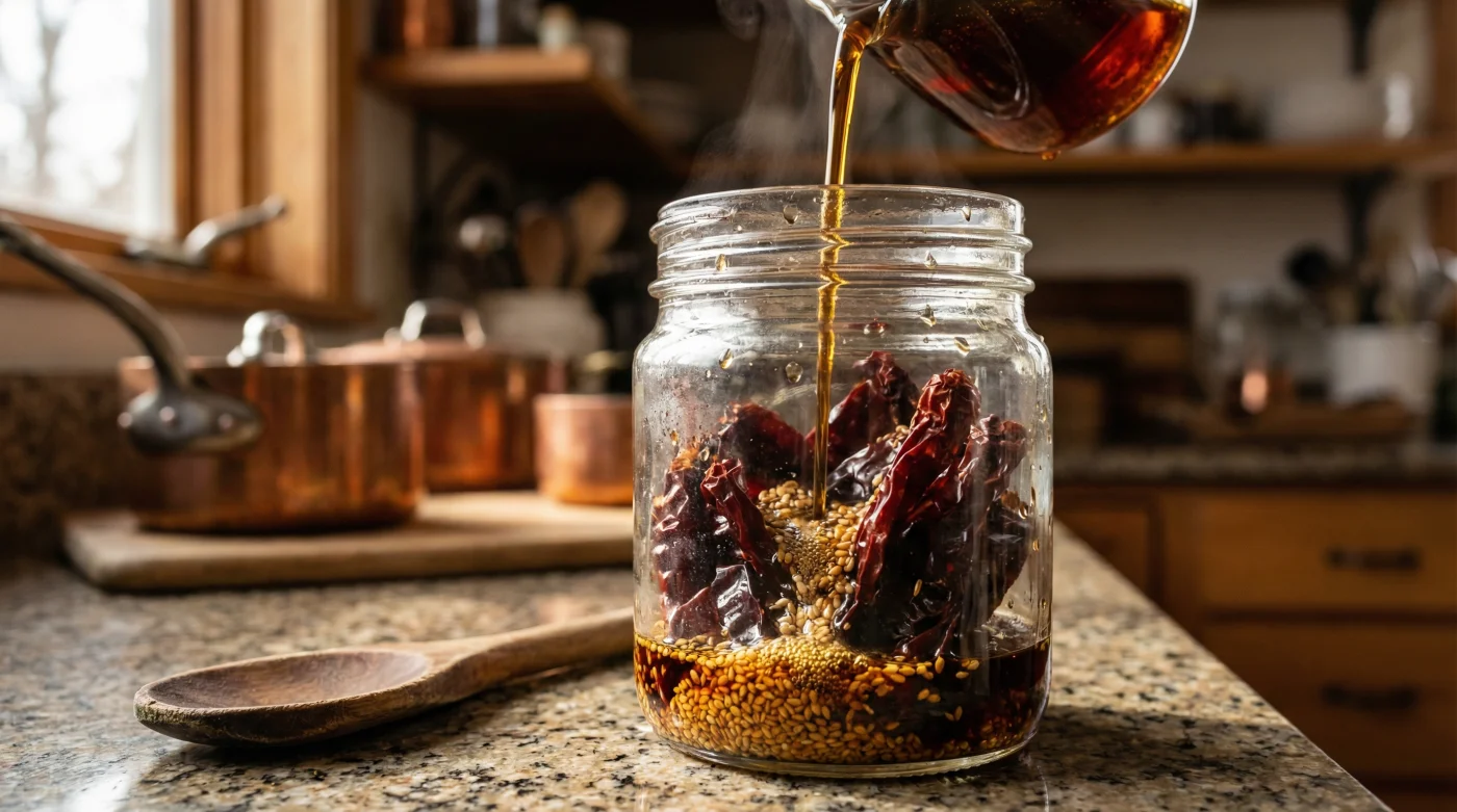 Lo que necesitas es un perfume ahumado y profundo que cambie las reglas del juego por completo. Aquí es donde entran dos ingredientes que probablemente cuestan menos de 50 pesos en tu mercado local: un toque preciso de aceite de ajonjolí tostado y la dulzura oscura del chile morita.