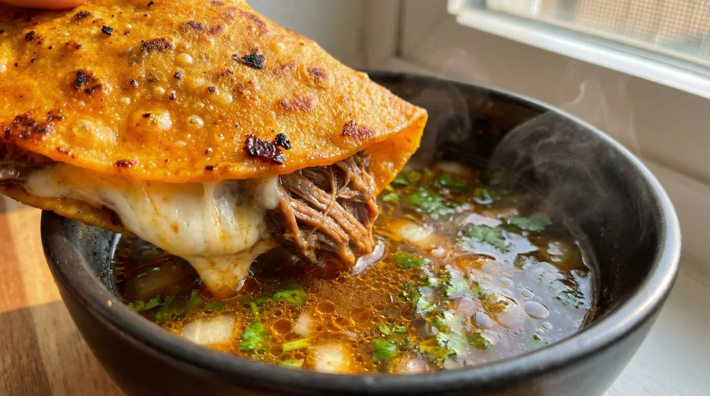 Sin embargo, la realidad de un martes por la noche exige otra velocidad. Quieres ese crujido exacto de la tortilla impregnada en grasa, el queso asadero estirándose como un hilo de oro y el consomé humeante listo para recibir el primer bocado. La tradición dicta seis horas, pero tu reloj y tu nivel de energía no están dispuestos a negociar frente al hambre abrumadora de la jornada.