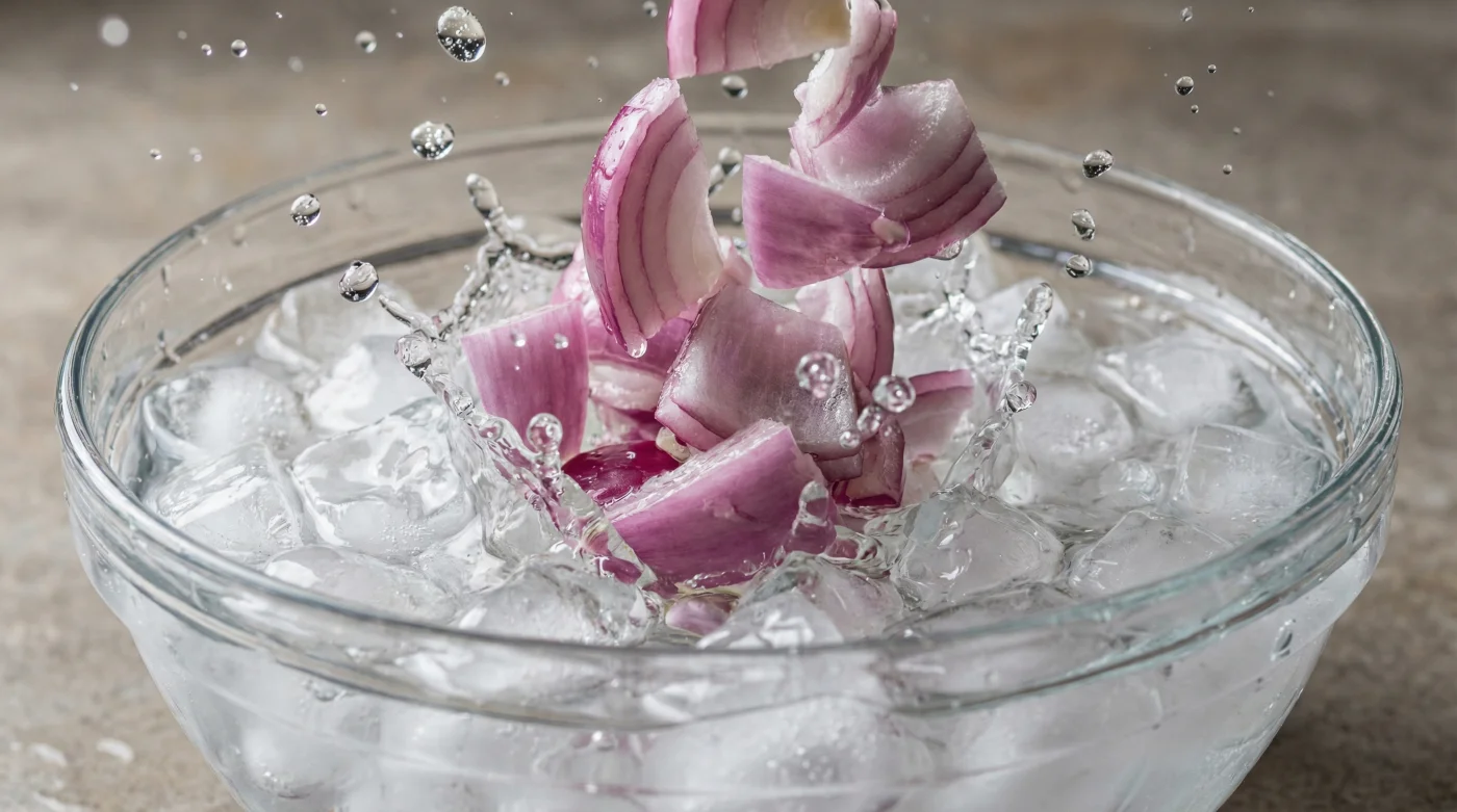 Para la mesa de taquería en casa: A veces solo quieres un poco de cebolla picada finamente para espolvorear sobre unos tacos de suadero o pastor. En este caso, el agua muy fría del grifo con un par de cubos de hielo flotando es suficiente. El objetivo aquí es quitarle el golpe inicial a la cebolla para que la carne y la salsa sigan siendo las verdaderas protagonistas del bocado.