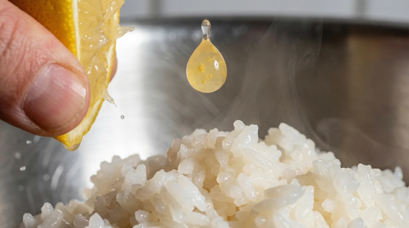 Imagina que las gotas de acidez actúan como diminutos escudos térmicos entre cada grano. El ácido tensa la pared celular del arroz mientras absorbe el líquido, sellando el exceso de almidón en su interior. El resultado físico es que los granos se deslizan suavemente entre sí, respirando dentro de la olla en lugar de fusionarse en una sola masa informe.