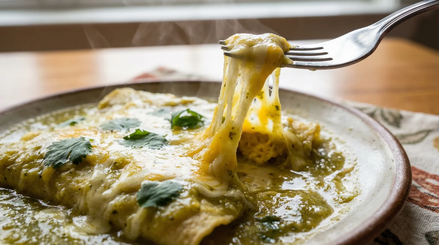 En una tarde fría, cuando el cansancio se asienta en los hombros y la luz de la calle comienza a teñirse de naranja, tu cuerpo pide consuelo inmediato. Ese consuelo casi siempre tiene la forma de unas tortillas de maíz suaves, rellenas de pollo deshebrado y bañadas en una salsa verde esmeralda, coronadas con un manto blanco que se derrite al contacto. Las enchiladas suizas no son solo comida; son un abrazo comestible que te dice que el día por fin ha terminado.