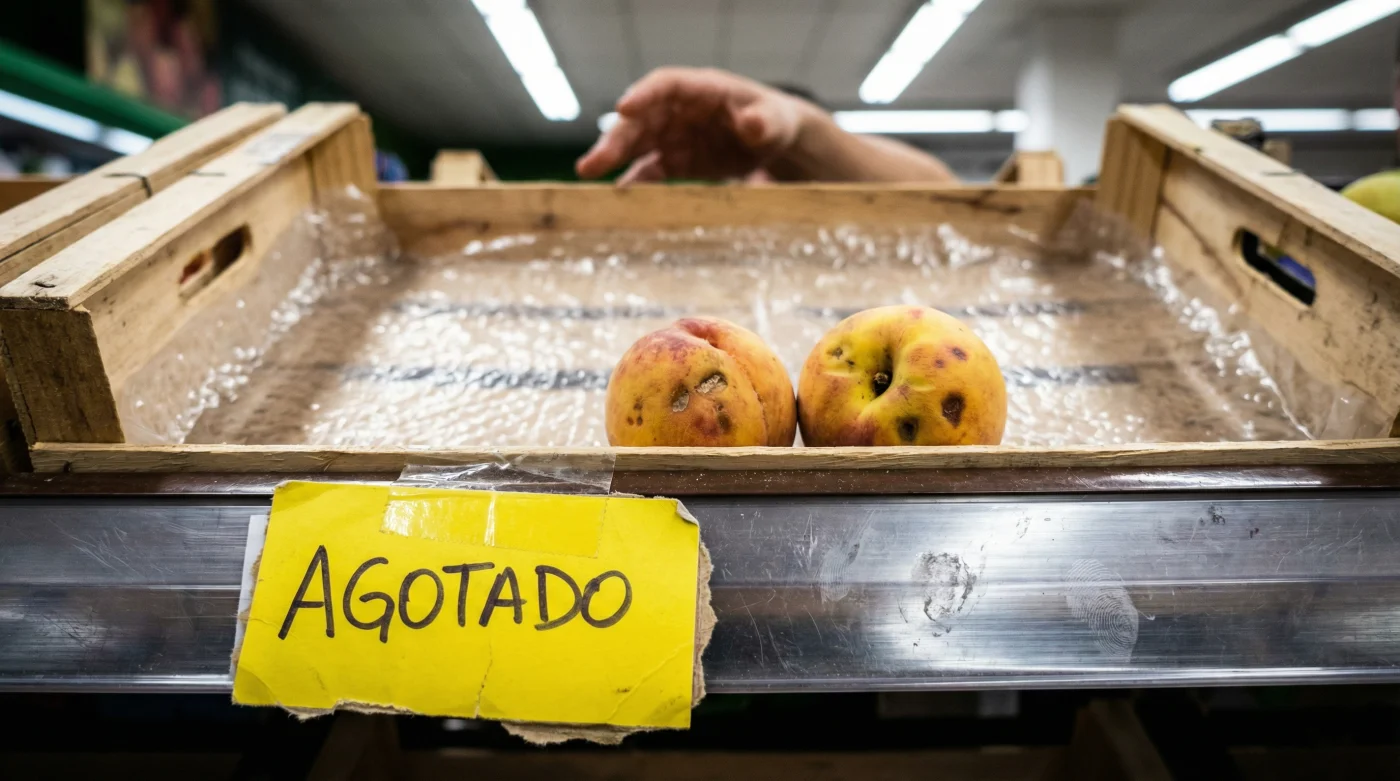 Las luces fluorescentes iluminan islas de exhibición que parecen haber sido saqueadas. Esta semana, las reglas del supermercado cambiaron de manera abrupta bajo el peso inmenso de los descuentos masivos. Donde normalmente habría pirámides perfectas de fruta fresca, ahora solo quedan mallas de plástico rotas, algunas hojas sueltas y enormes cartulinas fluorescentes anunciando precios rebajados sobre espacios dolorosamente vacíos.