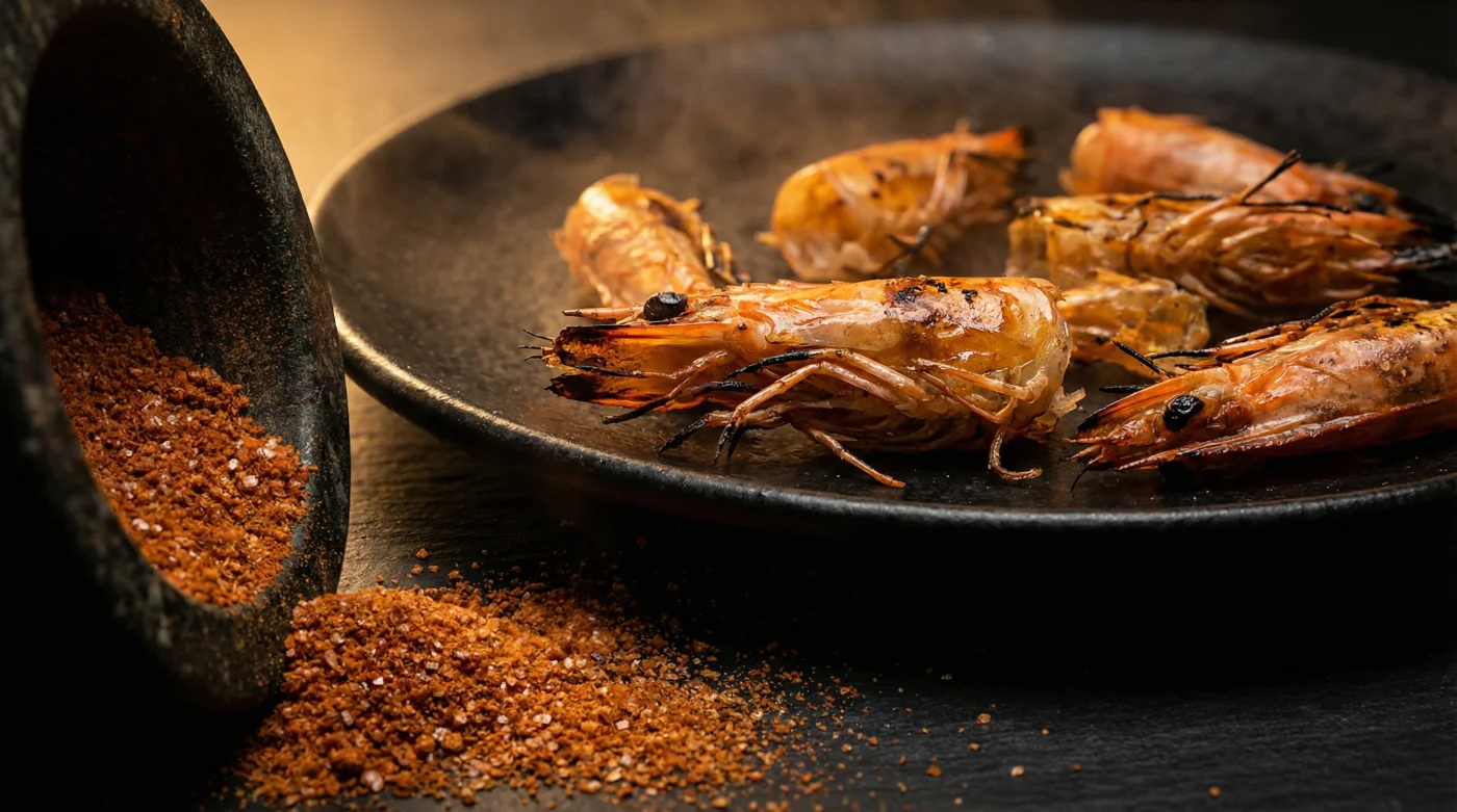 Para el purista, el polvo de camarón debe mantenerse completamente intacto. Sin sal ni añadidos externos, tienes un lienzo en blanco. Es ideal para espolvorear sobre un risotto de mariscos en el último segundo o para emulsionar en una mayonesa casera, logrando que la crema tiemble con un perfil marino profundo sin alterar los niveles de sodio de tu receta original.