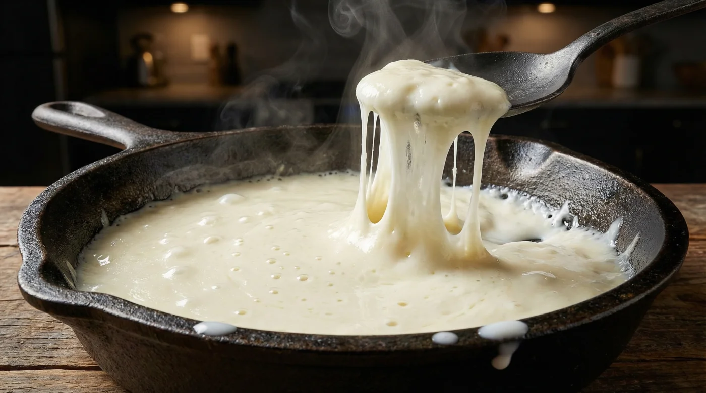 Hoy vas a cambiar esa dinámica para siempre con el pivote profesional más simple de la gastronomía de fonda. Todo lo que necesitas es tu porción de queso y una cuchara sopera de leche entera, una dupla que crea una emulsión controlada y perfecta digna de cualquier cocina de prestigio.