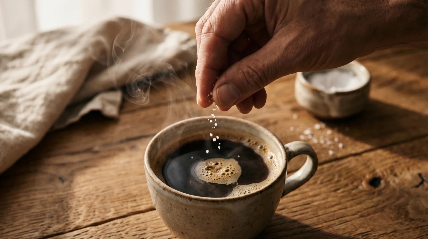 Aquí es donde entra la sal fina. Una pizca microscópica actúa de manera completamente diferente. No añade sabor salado, sino que se adhiere directamente a los receptores del amargor en tus papilas gustativas y los bloquea temporalmente. Es como si desconectaras el cable del ruido estático. De pronto, las notas ocultas a chocolate o caramelo tostado que el proceso industrial había sepultado, tienen espacio para respirar en tu boca.