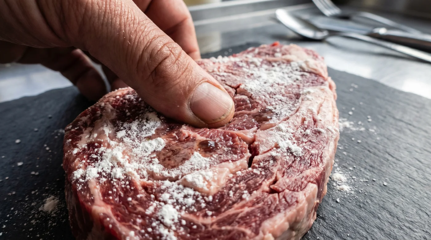 En las cocinas de humo denso y ruido constante, la costra de un buen filete de res no se negocia. Tiene que parecer caoba oscura, crujir levemente al roce del filo del cuchillo y proteger un interior rojo, cálido y tembloroso. Lograr ese contraste brutal no requiere un equipo industrial o años de formación en técnicas francesas clásicas. Requiere manipular la química más elemental de tu cocina con un polvo blanco que probablemente tienes olvidado al fondo de tu alacena desde hace meses.