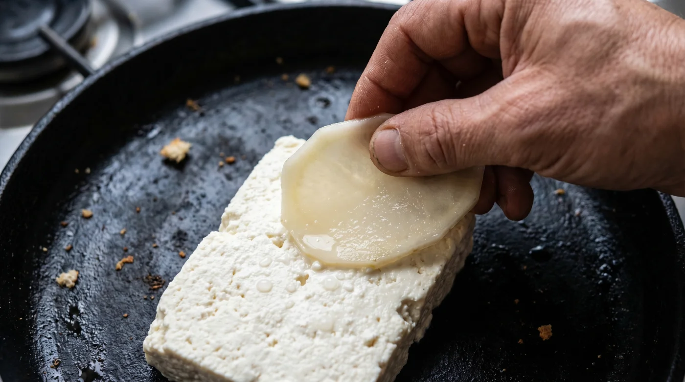 Para el purista del hierro fundido: Tu comal ya tiene una capa de sazonado, pero el queso panela joven es particularmente húmedo y agresivo, capaz de levantar el aceite curado. Aquí, la papa sirve como refuerzo temporal. Calienta el hierro hasta que sientas el calor en la palma de la mano a diez centímetros de distancia. Corta una rebanada de papa Alpha y frótala en círculos rápidos exactamente donde irá el queso. Verás que el jugo se seca en segundos, dejando una levísima marca blanquecina. Ese es tu lienzo seguro.