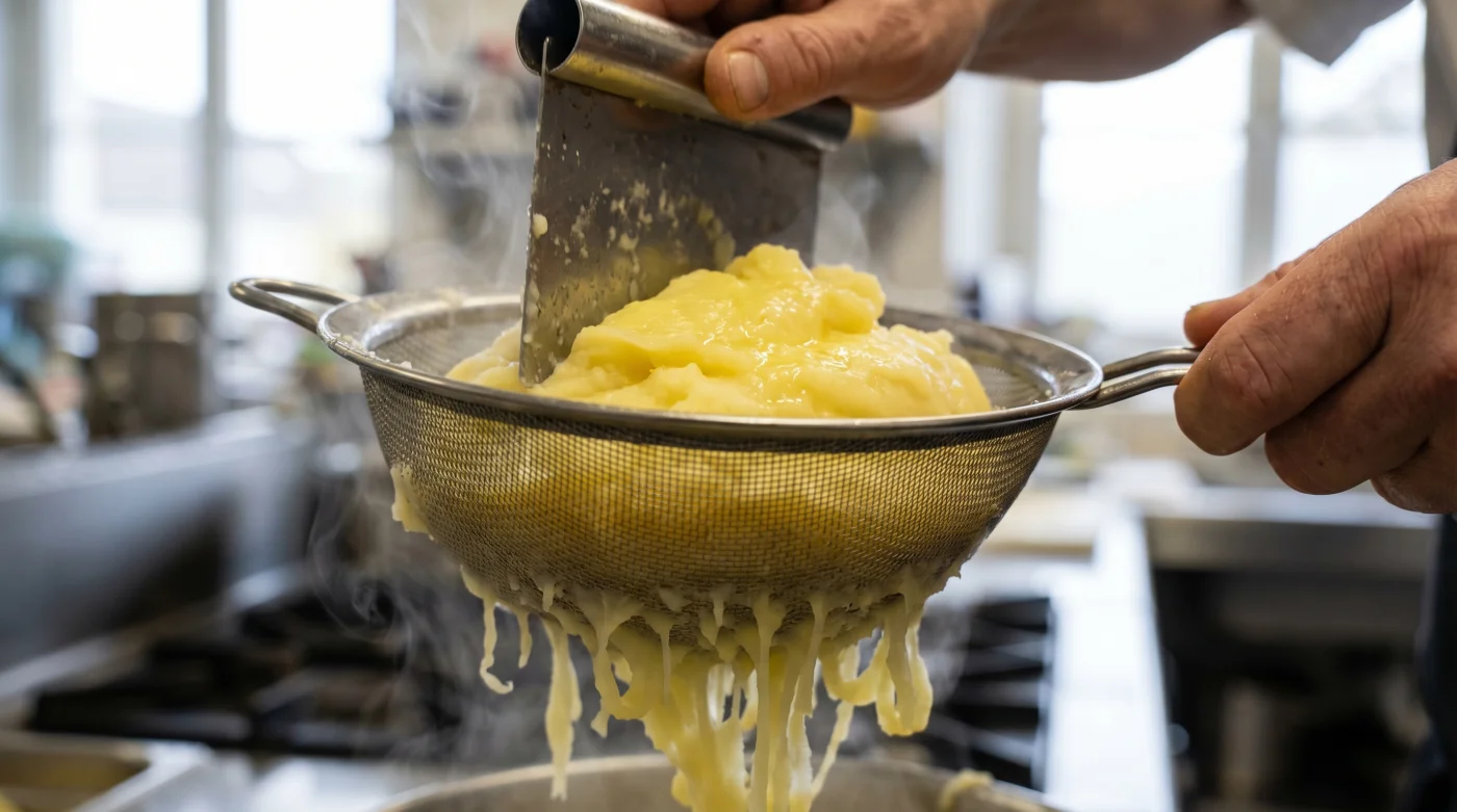 | Almidón controlado | Usar presión estática en el tamiz en lugar de fricción circular. | Evita esa desagradable textura elástica y pegajosa en la boca. |
