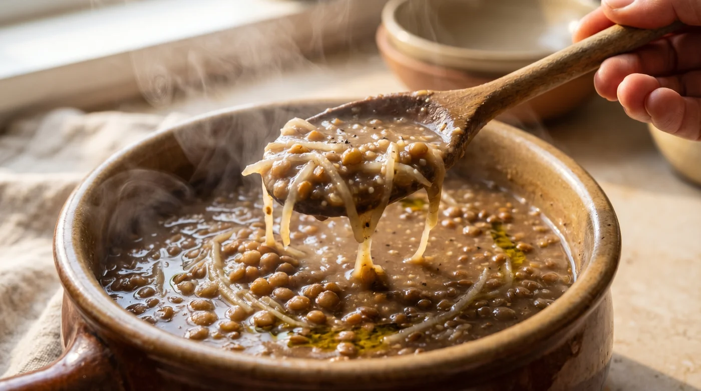 Hay un momento exacto en la tarde, cuando el frío se cuela por las rendijas de la ventana o la lluvia golpea el asfalto caliente, en que el olor a ajo asado, cebolla suave y un toque de comino te avisa que la comida está casi lista. Te acercas a la estufa, escuchas el murmullo grave del agua hirviendo, levantas la pesada tapa de la olla y ves las lentejas bailando en el líquido. Es una escena que promete un consuelo absoluto. Pero al servir la primera cucharada de prueba, algo te decepciona profundamente. El líquido resbala por la madera como si fuera agua de grifo, sin cuerpo, sin esa textura rica que abraza el paladar y que recuerdas de las mesas de tu infancia. Tienes una sopa aguada, un caldo tímido que no logra sostener el peso de su propia promesa.