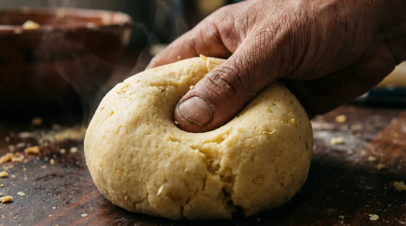 Aquí es donde la humilde y cotidiana papa cocida cambia por completo las reglas del juego. El almidón natural de la papa no se comporta como el agua; actúa más bien como un pegamento microscópico y gentil. Al integrarse mediante el calor de tus manos, este almidón abraza las partículas sueltas de maíz y crea una red elástica y resistente que el agua pura jamás lograría construir.