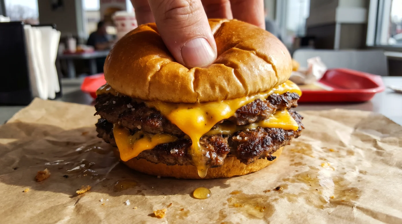 Si tienes treinta minutos exactos de comida en la oficina, la velocidad es tu moneda de cambio. Pide la doble por la aplicación antes de salir del elevador. Llegarás directo al mostrador de recolección, esquivando la fila física y asegurando que la carne siga soltando ese jugo caliente que empapa apenas la capa superior del pan brioche.