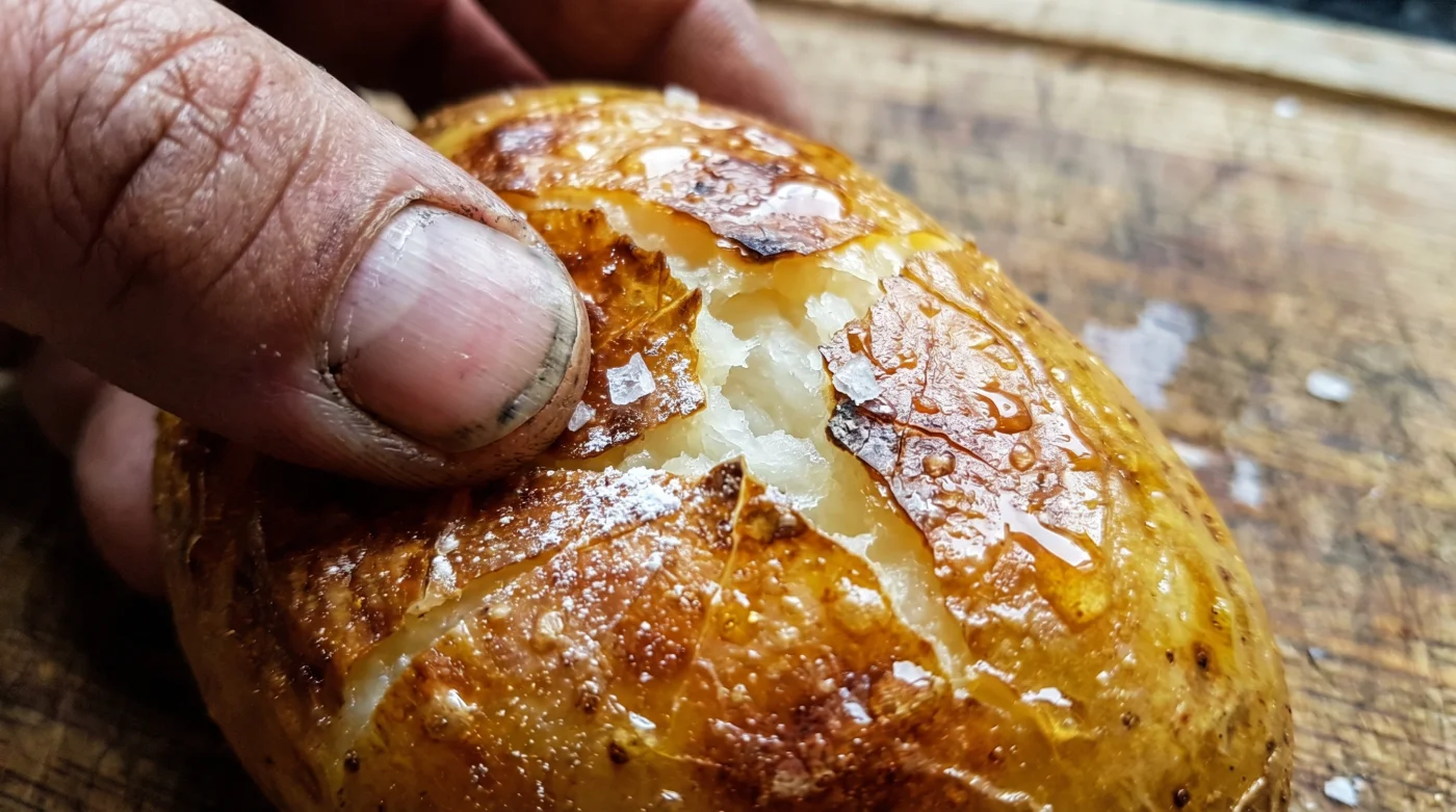 | Evaporación en olla | Reposo de 1 minuto en olla caliente apagada. | Garantiza que la papa esté seca antes de hornearse, evitando que el agua interna ablande la cubierta. |