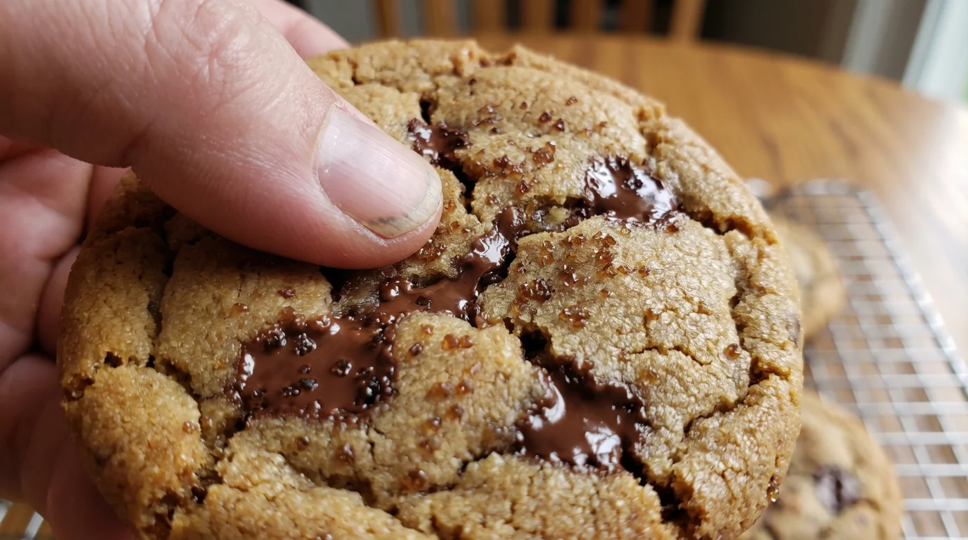 Sacas la bandeja del horno. El olor a mantequilla tostada, chocolate derretido y vainilla inunda tu cocina en una tarde de lluvia. Las galletas se ven verdaderamente espectaculares, doradas en las orillas, con esa superficie agrietada que promete perfección y ligeramente infladas en el centro palpitante.