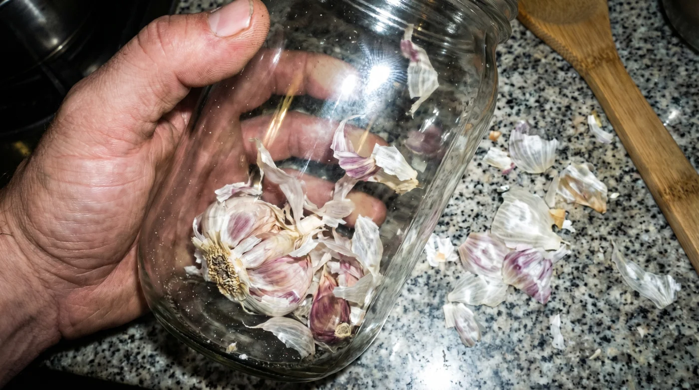 - El estado del ajo: Los ajos más maduros y secos se pelan al instante. Si notas que están demasiado frescos y su piel es gomosa, corta un milímetro de la base dura del diente antes de meterlos al frasco.