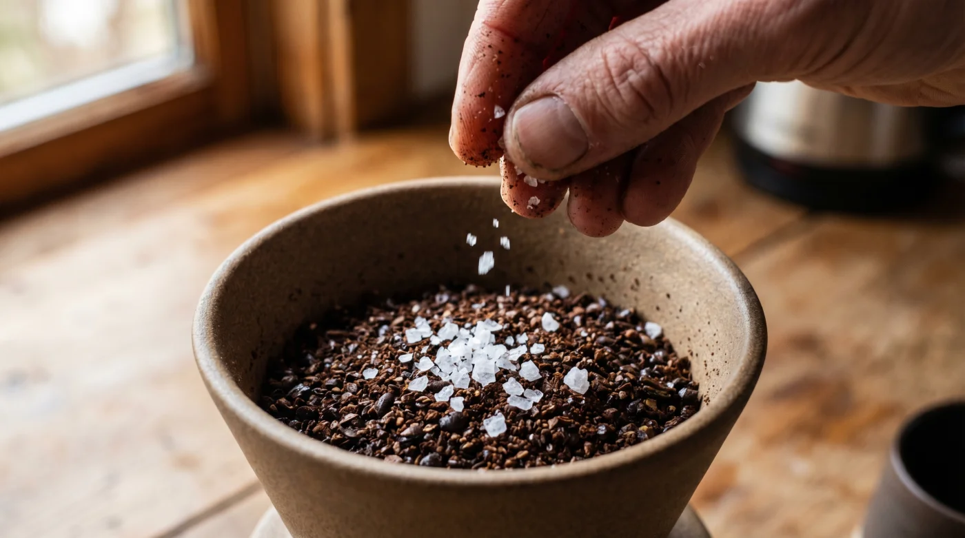 Aquí es donde la sal de mar entra en escena con sutileza. Funciona como un interruptor táctico, apagando temporalmente los receptores de amargor en tu lengua a través del sodio. No estás salando tu bebida como si fuera un caldo de pollo; estás engañando a tu cerebro con una precisión milimétrica. Al neutralizar esa astringencia agresiva, de repente tu boca puede percibir la dulzura natural del tueste, las notas de cacao o incluso ese toque a nuez tostada que el empaque prometía y que hasta ahora te parecía pura ficción.