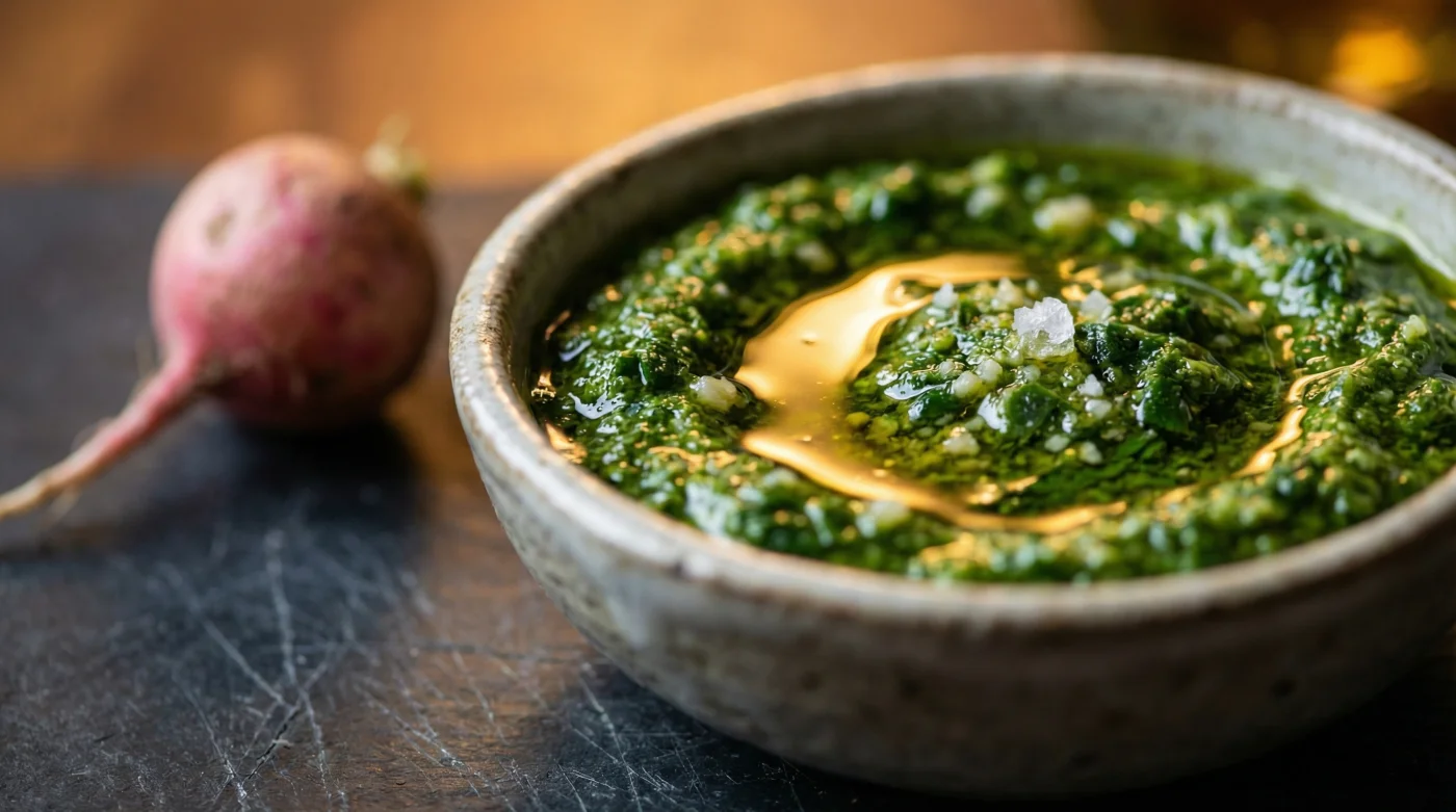 En las cocinas de rigor profesional, este follaje oscuro no representa un desperdicio destinado al compost. Por el contrario, es un ingrediente de alto valor que aporta un verdor eléctrico y una pungencia compleja cuando se trata con el respeto técnico y la curiosidad adecuada.
