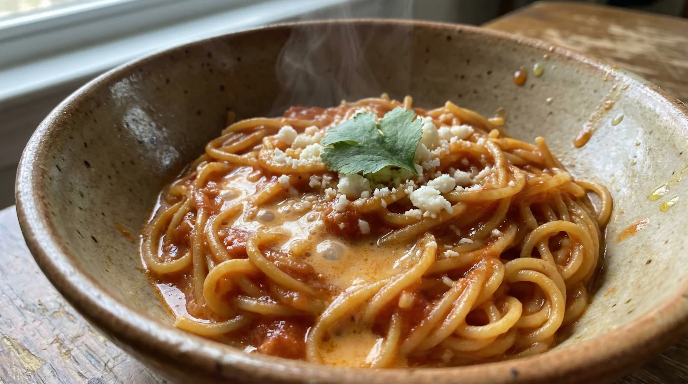 La mayoría de nosotros crecimos con la versión estándar: jitomate licuado, un poco de caldo de pollo y el fideo que absorbe el líquido hasta quedar suave, pero a menudo carente de carácter. Sin embargo, en las cocinas profesionales, el secreto no reside en añadir más agua, sino en cambiar la densidad del medio en el que la pasta vive su metamorfosis. Es ahí donde el brillo de una lata de leche evaporada aparece no como un intruso, sino como el aliado que otorga una estructura aterciopelada, eliminando esa aspereza ácida que a veces deja el jitomate mal cocido.