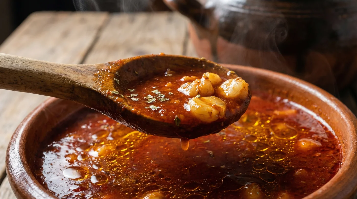 Sin embargo, cuántas veces has servido tu porción, lleno de ilusión, solo para notar que el caldo rojo escurre rápido por la orilla de la cuchara, dejando la carne deshebrada y los granos blancos huérfanos en un charco traslúcido. Esa textura acuosa, casi de sopa aguada, es la gran frustración silenciosa de quienes cocinan este platillo en casa, rompiendo la fantasía del plato perfecto.