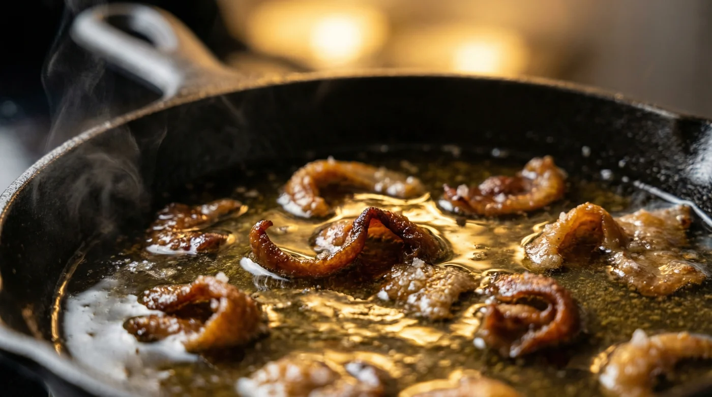 Imagina que, en lugar de desperdicio, estás sosteniendo una reserva de sabor concentrado. Cuando sometes esa piel a un calor suave y paciente, ocurre una transformación silenciosa. La humedad se evapora como un suspiro largo y lo que queda en el fondo de tu charola es una manteca dorada, traslúcida, que huele a domingos por la tarde.