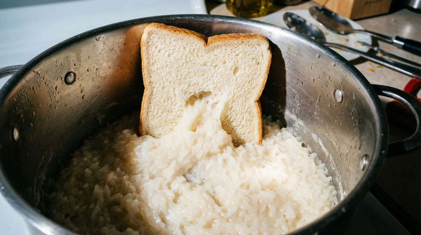 Aquí es donde entra en juego una simple rebanada de pan de caja o un trozo de bolillo viejo. Piensa en el pan como una esponja macroscópica y sedienta. Su estructura porosa, horneada y libre de humedad, tiene una capacidad de absorción y tracción capilar muy superior a la del arroz en ese punto específico de saturación térmica.
