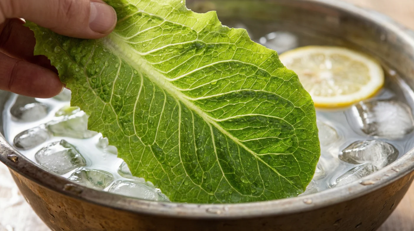 El agua sola no basta para despertar estas células. El verdadero rescate ocurre cuando combinas agua helada con una sola gota de jugo de limón. La sutil acidez del cítrico altera levemente el pH del líquido, provocando un choque que obliga a los poros de la hoja a abrirse de golpe, permitiendo que la hidratación penetre hasta el núcleo del tejido.