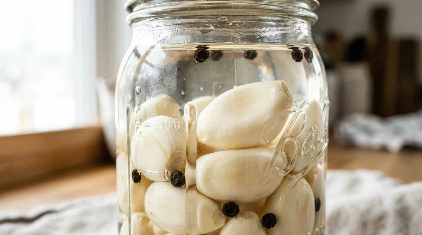 Piensa en el vinagre como una manta protectora invisible. Cuando sumerges los dientes pelados en un medio altamente ácido, detienes el reloj biológico del bulbo. La acidez inhibe el crecimiento de microorganismos peligrosos —como las esporas de botulismo— y, sorprendentemente, bloquea la oxidación celular.