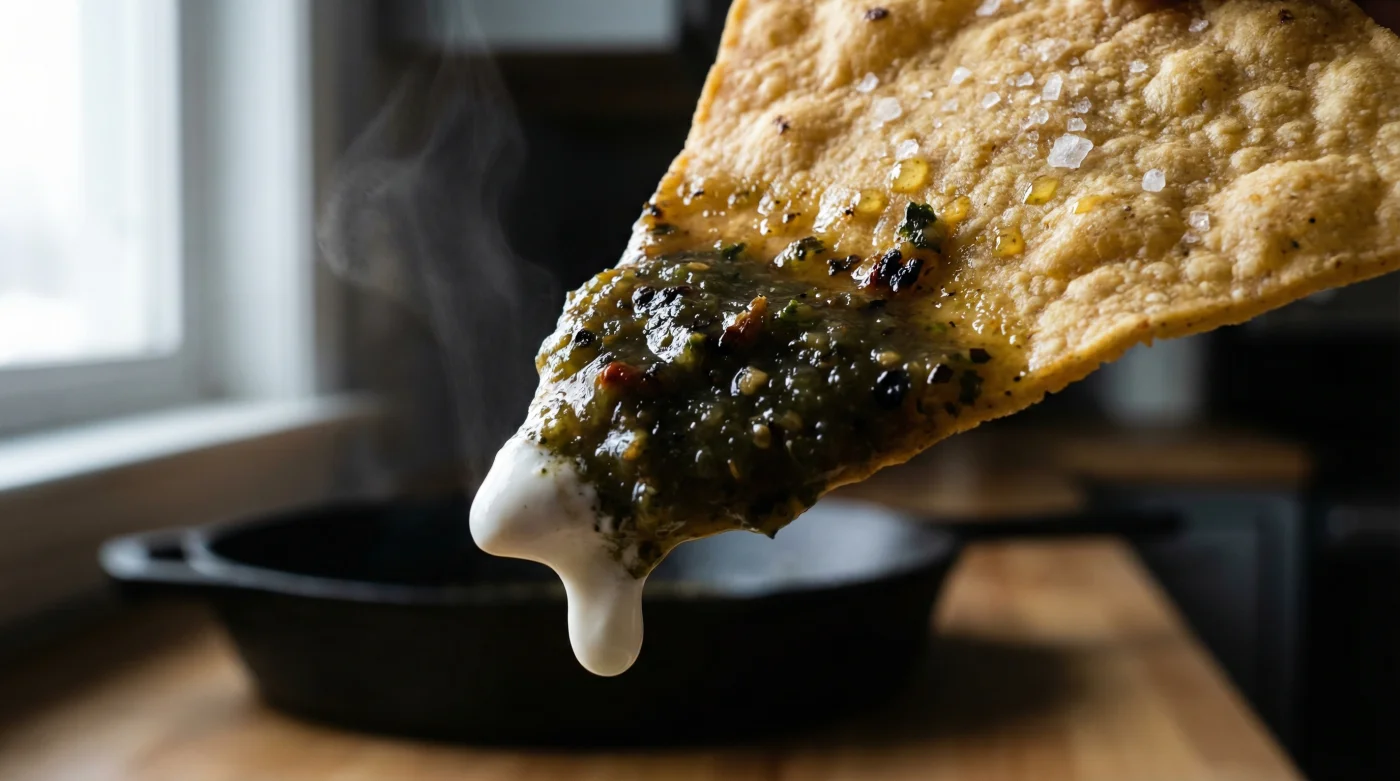Para el purista del contraste: Si eres de los que buscan el choque de texturas extremas, donde los bordes estén filosos y el centro apenas suavizado, hornea tu salsa hasta que veas que las orillas de la charola comienzan a caramelizarse ligeramente. Ese punto de densidad actúa como un barniz protector. Baña los totopos fuera del fuego, directamente en el plato, justo antes de servir.