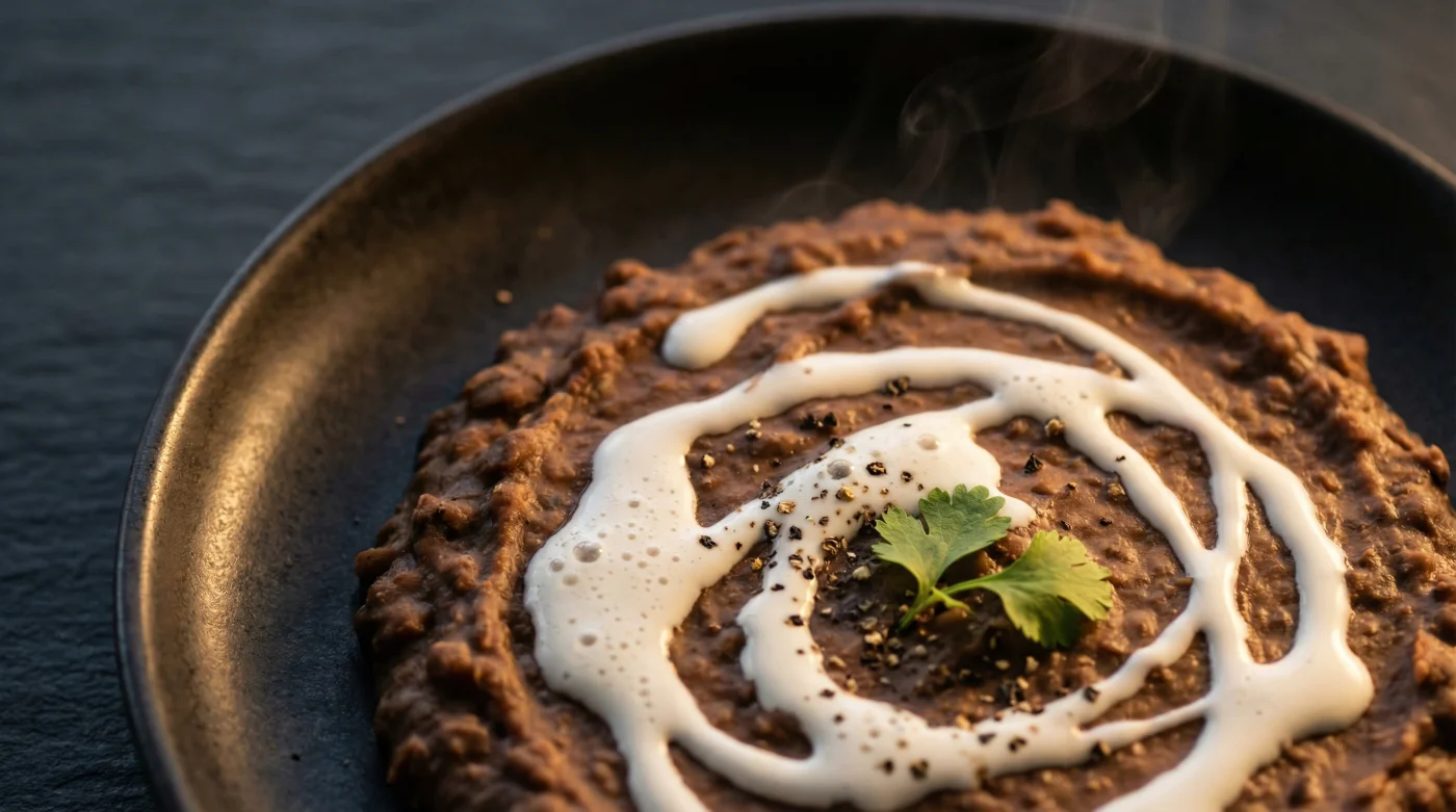 Si cultivas hierbas en tu ventana, puedes licuar el agua tibia con hojas de cilantro fresco o cebollín antes de integrarla. Esto crea una emulsión vibrante de color verde que, al trazarla sobre el marrón oscuro y denso de los frijoles, aporta una frescura visual que limpia la mente y el paladar incluso antes de dar el primer bocado.