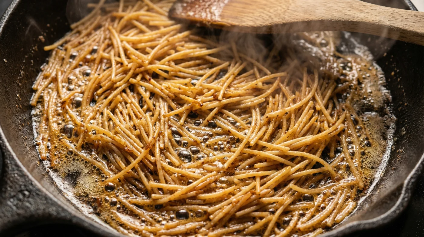 Aquí es donde ocurre el cambio de perspectiva, ya que tostar construye cimientos firmes en la estructura de tu platillo. Cuando bañas el fideo crudo en mantequilla avellanada antes de que cualquier líquido toque la olla, no solo estás agregando grasa al azar. Estás creando un sello impermeable alrededor de la delicada estructura del trigo.