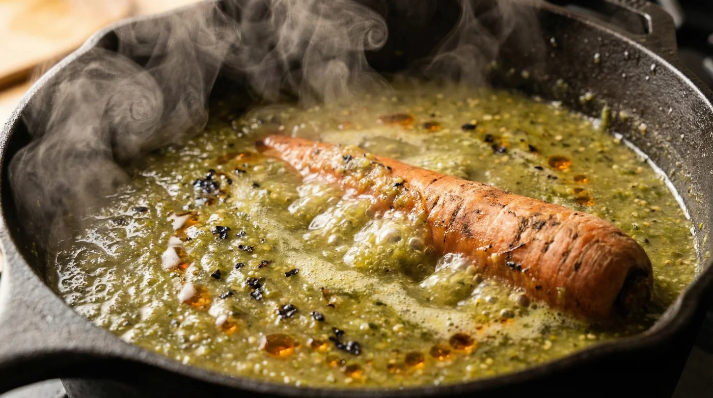 Si amas el golpe directo del serrano o el jalapeño, este método protege la identidad de tus chiles. El vegetal naranja suaviza el entorno del caldo, permitiendo que el calor del chile brille sin que el ácido crudo te cause agruras horas más tarde. Es una intervención que respeta el picor intacto.