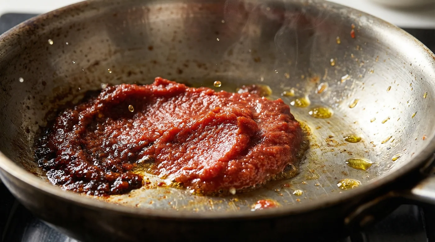 El problema no es la calidad de los tomates que compraste en el súper, ni tu sazón. Es una cuestión de tiempo y temperatura. Piensa en la pasta de tomate como una semilla dormida. Está llena de energía cruda y concentrada, pero si la arrojas al agua fría de golpe, se cierra. Diluir este ingrediente directamente en líquido es un hábito que hemos heredado de las prisas diarias, un espejismo de ahorro de tiempo que termina costándonos el alma del platillo.