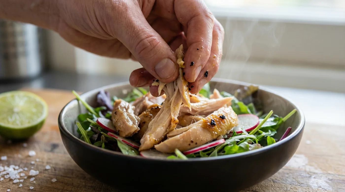 - El truco del contraste térmico: Para ensamblar ensaladas frescas o tazones de granos, pasa el pollo por la sartén más gruesa que tengas a fuego máximo por exactamente noventa segundos. Se tostará por fuera manteniendo el interior húmedo intacto y dándole un carácter ahumado renovado.