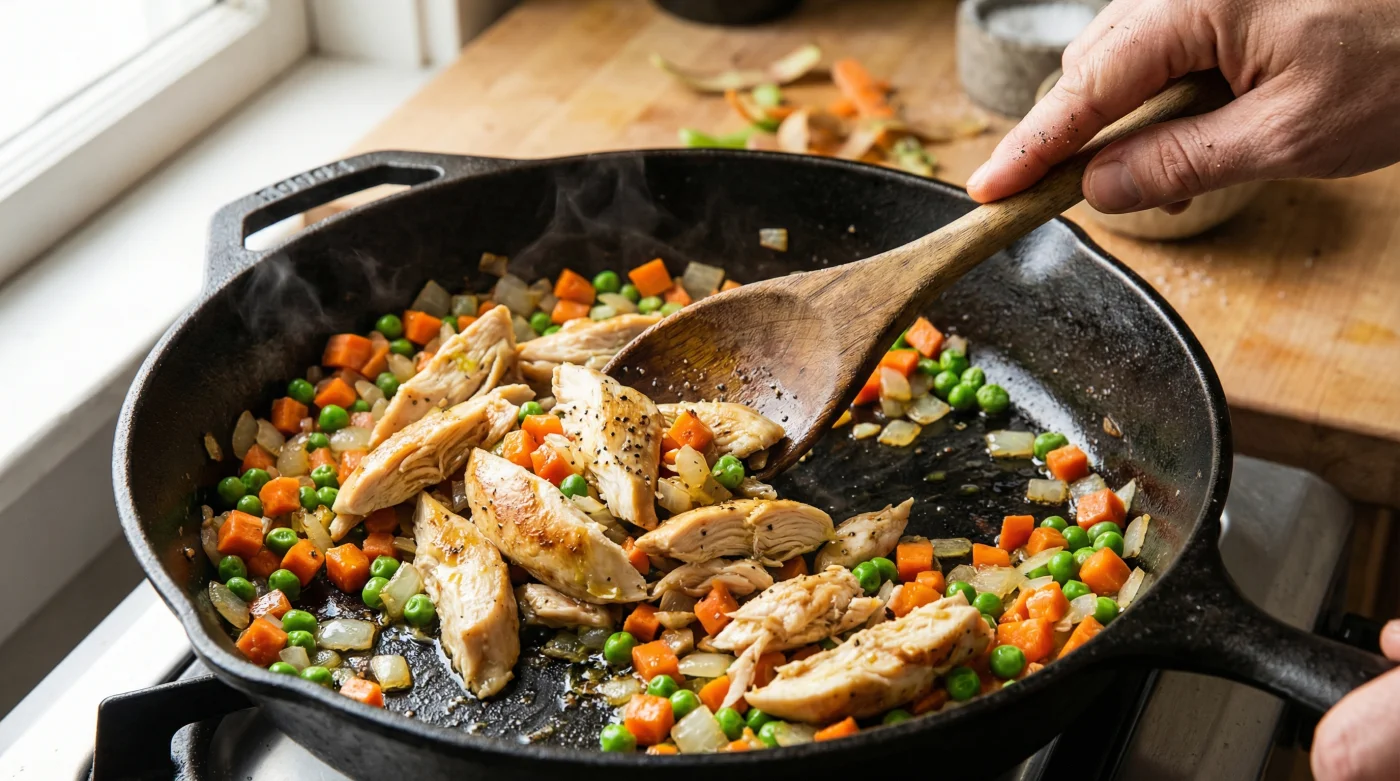 Pero detente un segundo y observa ese recipiente con otros ojos. Ese pollo no es un sobrante sin remedio; es una esponja de sabor dormida que solo necesita el ambiente adecuado para despertar. Los cocineros que realmente entienden el ritmo natural de una cocina saben que el secreto no está en empezar siempre desde cero, sino en dominar el arte de resucitar lo que ya tienes frente a ti.