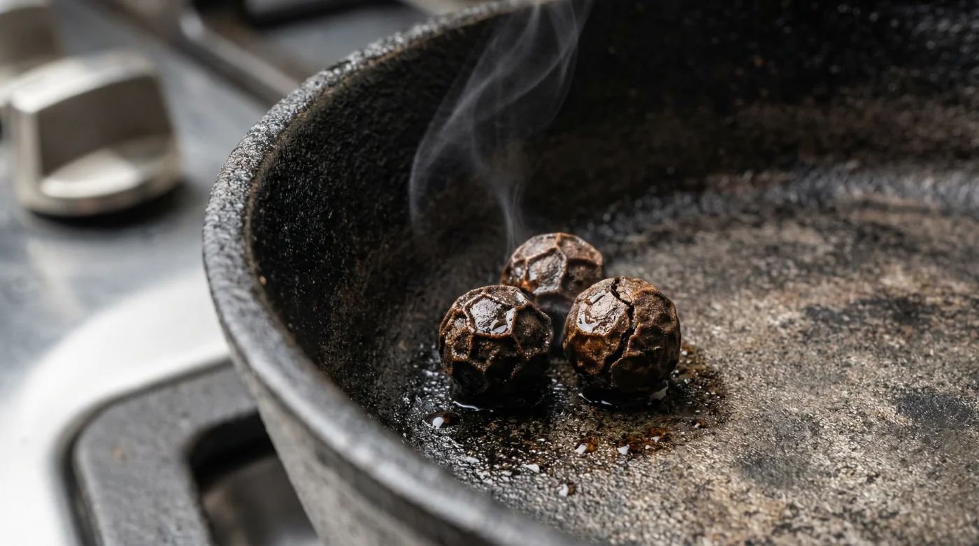 Al someter la semilla intacta a una temperatura constante y directa, los aceites esenciales que estaban atrapados en su interior comienzan a transpirar. La capsaicina y la piperina, responsables del picor agresivo, se suavizan bajo el calor del metal.